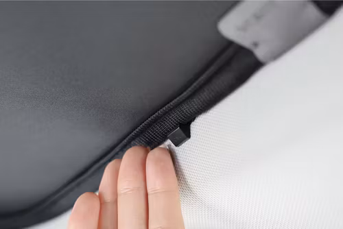Dark Matter: The upgraded black mesh fabric with anti-light silver coating effectively reduces interior temperature and blocks up to 99% UV.