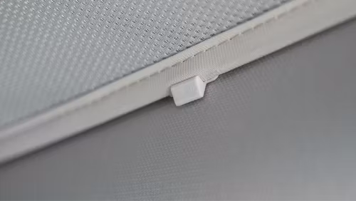 Dark Matter: The upgraded black mesh fabric with anti-light silver coating effectively reduces interior temperature and blocks up to 99% UV.