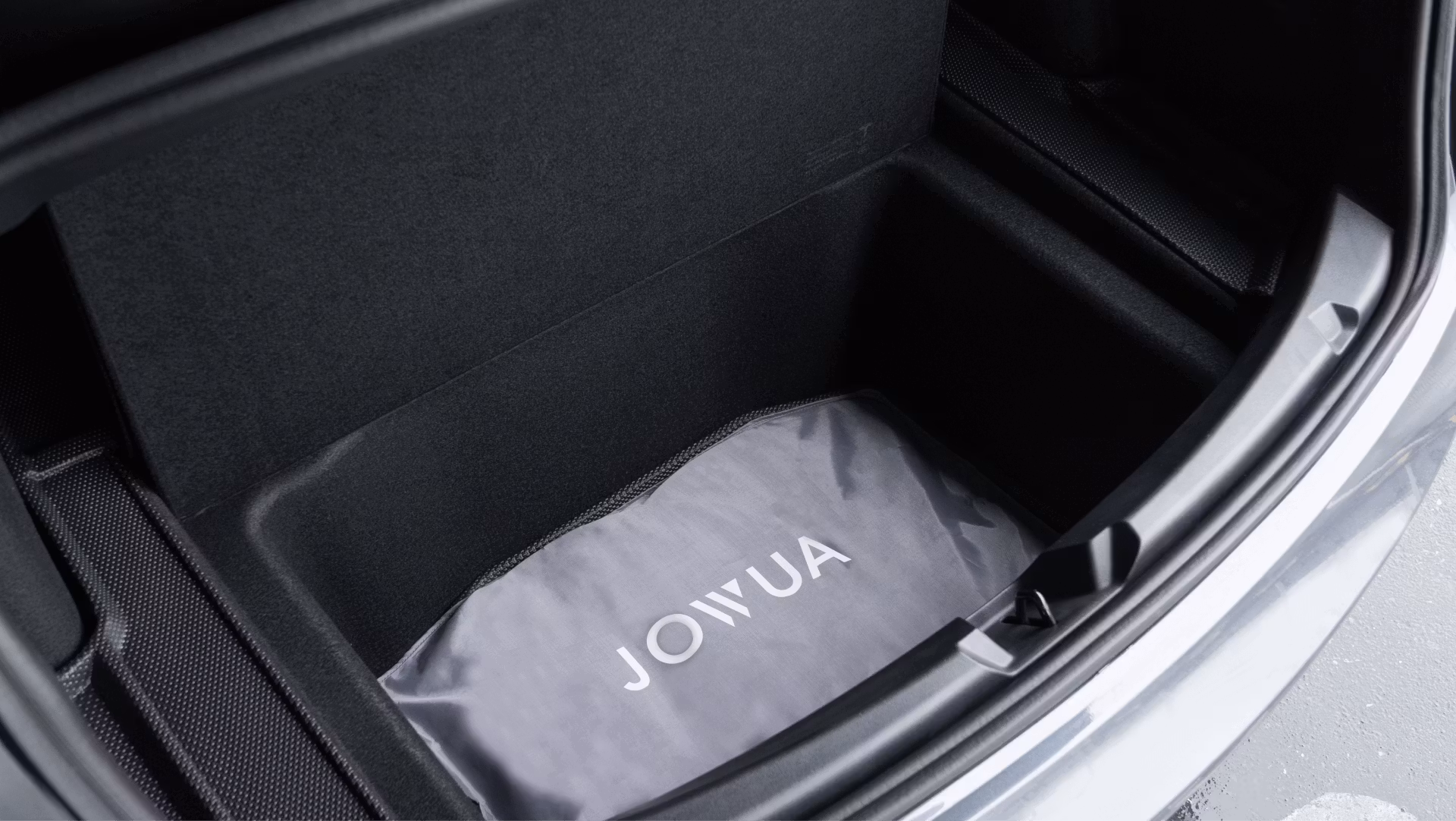 Put the sunshades into the pouch and store them in the lower trunk compartment with the Jowua rear well liner.